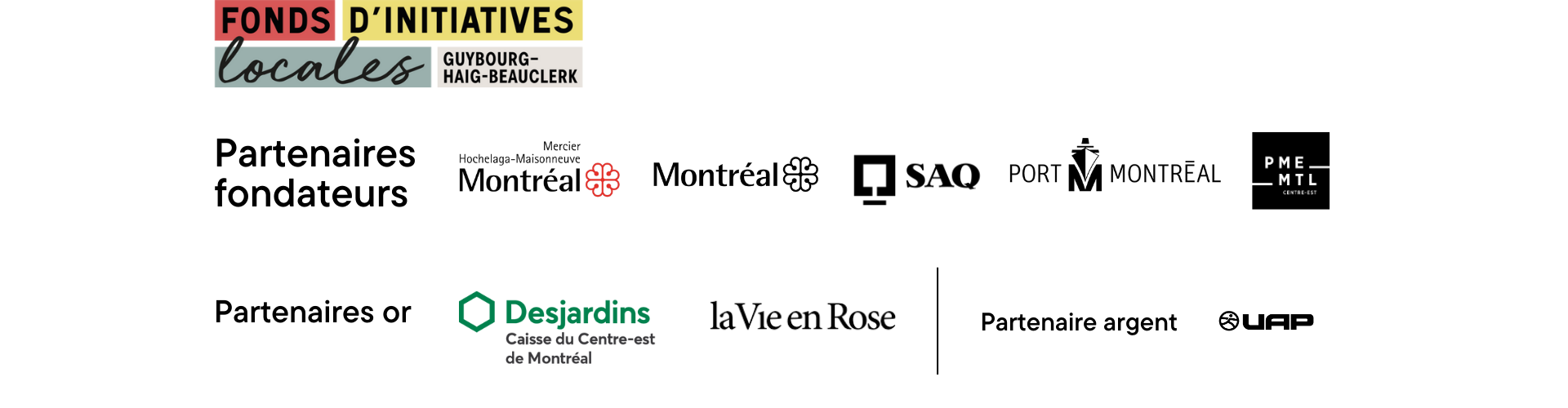 La mise en œuvre du FIL est rendue possible grâce à la contribution financière de l’arrondissement Mercier-Hochelaga-Maisonneuve, la Ville de Montréal, la Société des alcools du Québec (SAQ), l’Administration portuaire de Montréal, la Caisse Desjardins du Centre-Est de Montréal, La Vie en Rose, UAP et PME MTL Centre-Est.